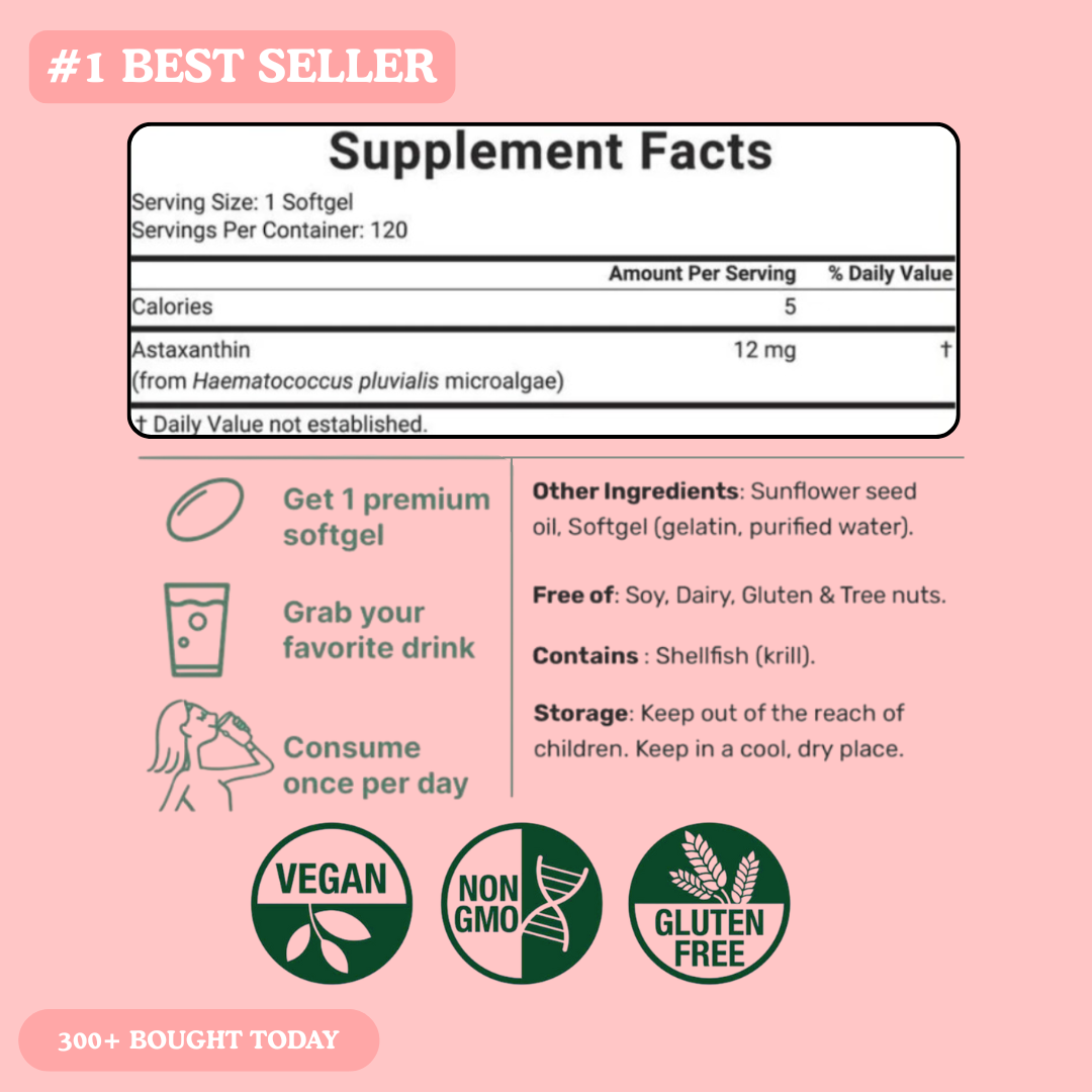 Astaxanthin helps neutralize free radicals, which are caused by things like UV exposure, pollution, stress, and aging. These free radicals contribute to dullness and visible aging. By reducing oxidative stress at the cellular level, astaxanthin helps skin maintain a healthier, more youthful appearance over time.